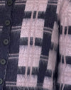 The Anzio cardigan, in a black and red check brushed knit fabric featuress a regular, long sleeve fit with crew neckline and button features. Style with our Kiyowo puffball mini skirt.