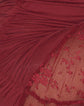 In a dark cherry smooth slinky fabric, the Carlie dress features a mini, bodycon fit with a sleeveless bandeau design and an A-line hem with lace detailing and lettuce trim.