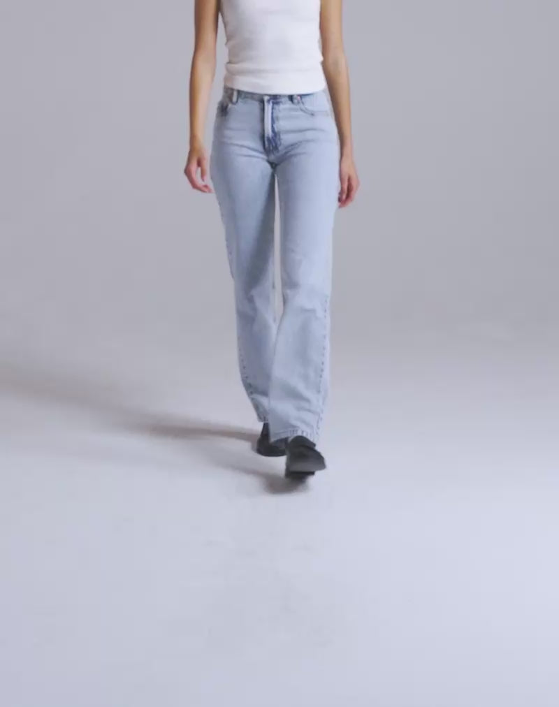 Our Parallel jeans in a slim fit, featuring a straight leg, mid rise design, belt loops and a concealed zip and button fastening. In an 80's light wash blue rigid denim. Finish the look with the Amabon long sleeve top.